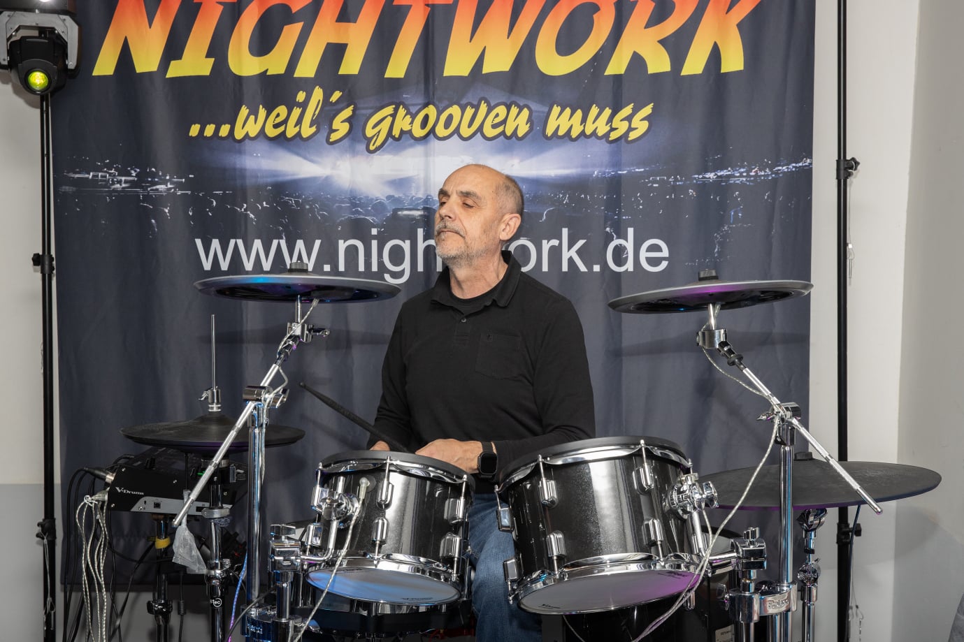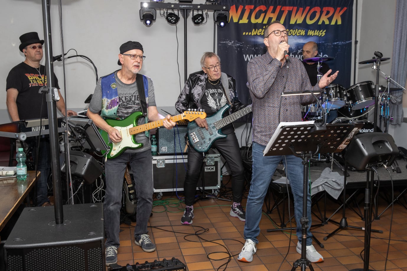 Dann sorgt die Düsseldorfer Band NIGHTWORK für echte Livemusik-Stimmung, mitknackigem Schlagzeug, erdigem Bass, satten Keyboards, fetter Gitarre und markantem Gesang.