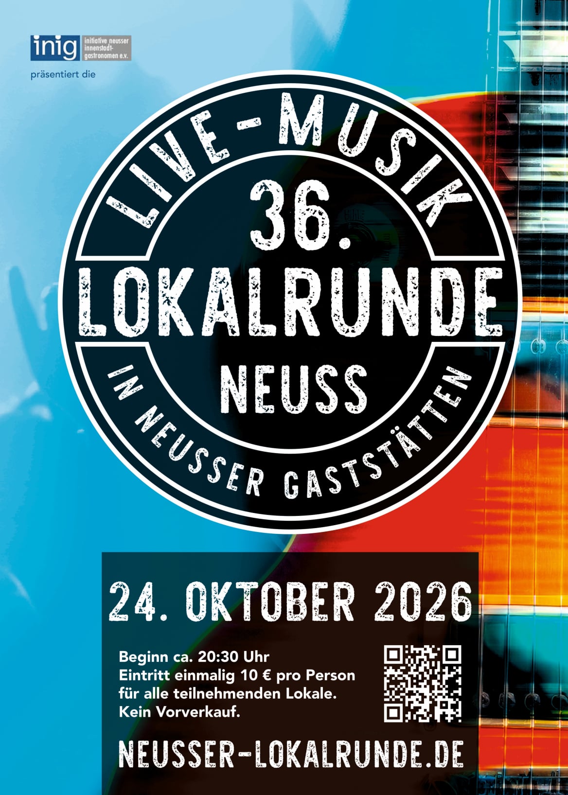 Die nächste Neusser Lokalrunde findet im Oktober 2026 statt - einfach vormerken 24.10.26. Gute Musik und Freunde treffen, das ist die Neusser Lokalrunde.