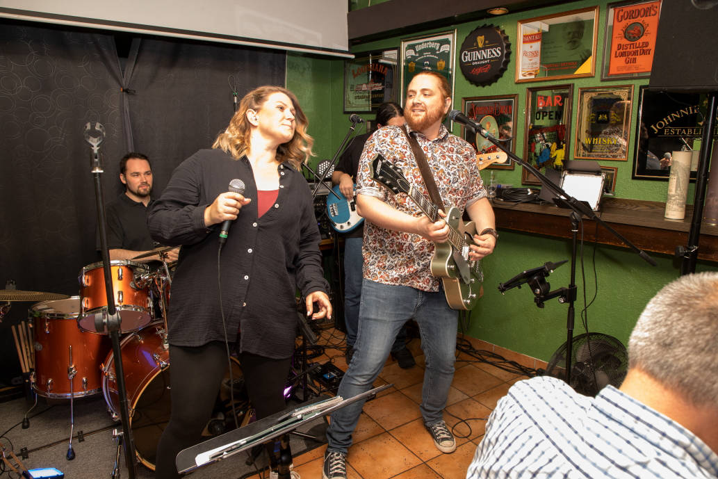 Dann sorgt die Düsseldorfer Band NIGHTWORK für echte Livemusik-Stimmung, mitknackigem Schlagzeug, erdigem Bass, satten Keyboards, fetter Gitarre und markantem Gesang.